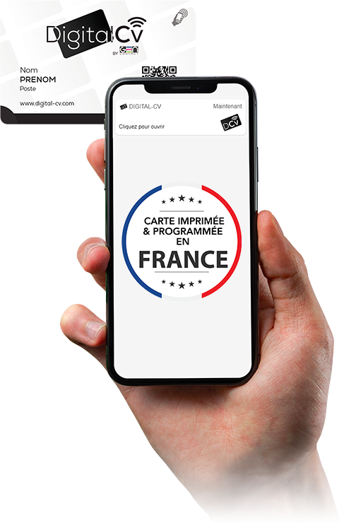 La carte de visite Digital-CV, avec la technologie NFC intégrée, vous permet de transmettre vos coordonnées et informations.